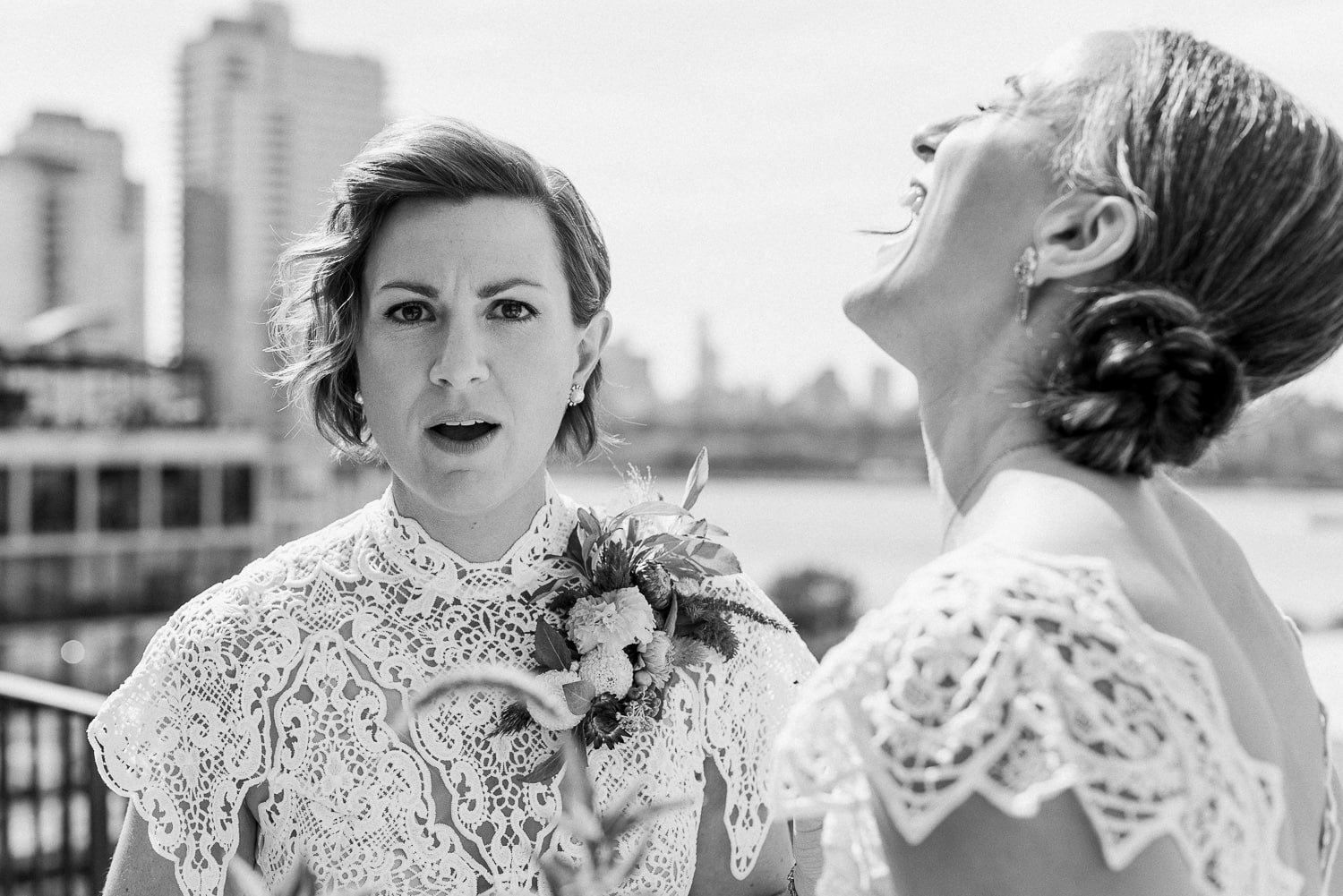 Kira and Rachel’s wedding at the Wythe Hotel last summer was a blast. I grew up with Kira, and it’s always a special delight to photograph the wedding of a K-12 classmate and friend. There was an abundance of playful delight throughout the day, making it a joy to photograph. Favorite moments included when Rachel realized Kira’s custom wedding necklace was a portrait of her face, and Pattaya Hart as the surprise dance performer at the end of the night. A true privilege to document the wedding of these two intelligent and beautiful women. Happy 1 year anniversary Kira and Rachel!!